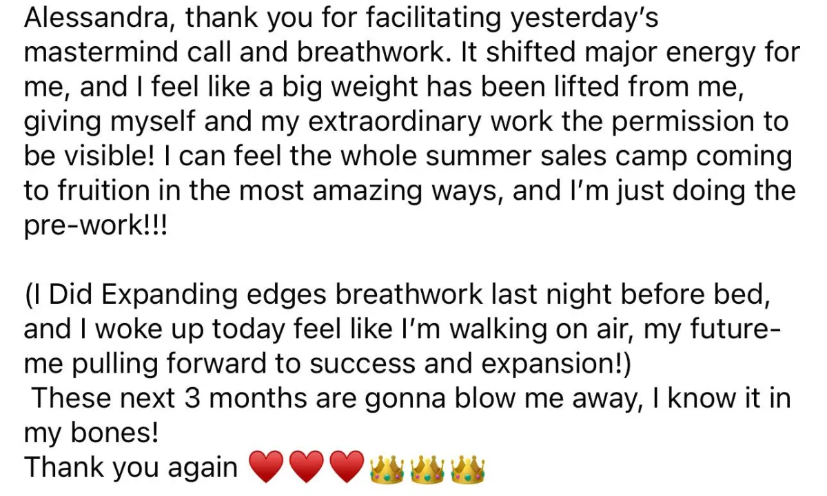 This ensures you’re not stepping into the program with resistance or contraction — you’re stepping in already open, ready, and primed to rise.