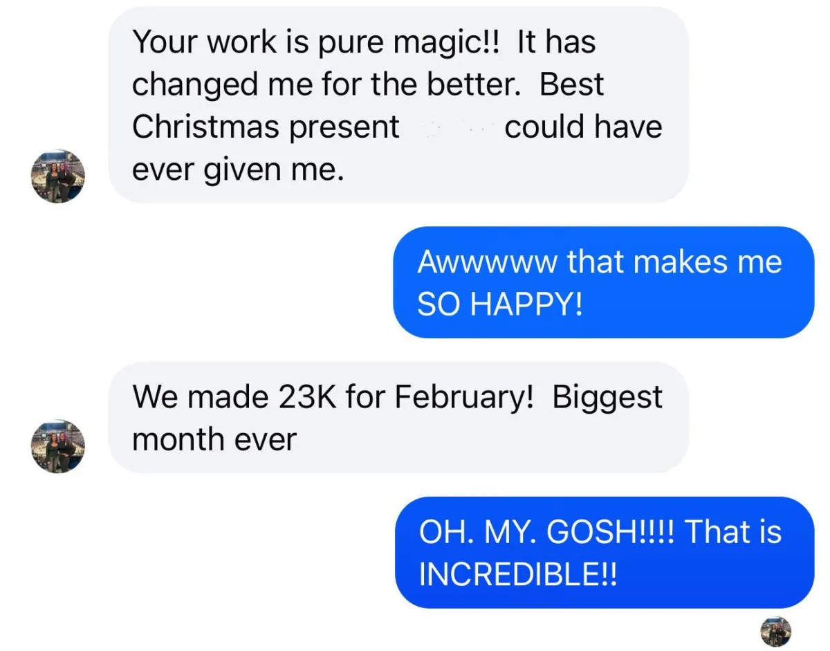Results vary depending on your commitment, but here’s what’s consistent: when you embody your expanded identity, you sell differently, create differently, move differently — and your results reflect that. Clients have gone from circling $5k, $10k, $20k months for years to breaking into their first $100k+ months and million-dollar years. Others have found themselves finally visible, finally confident, finally free to lead. The question isn’t if it works. The question is: are you ready to show up as the woman who does?